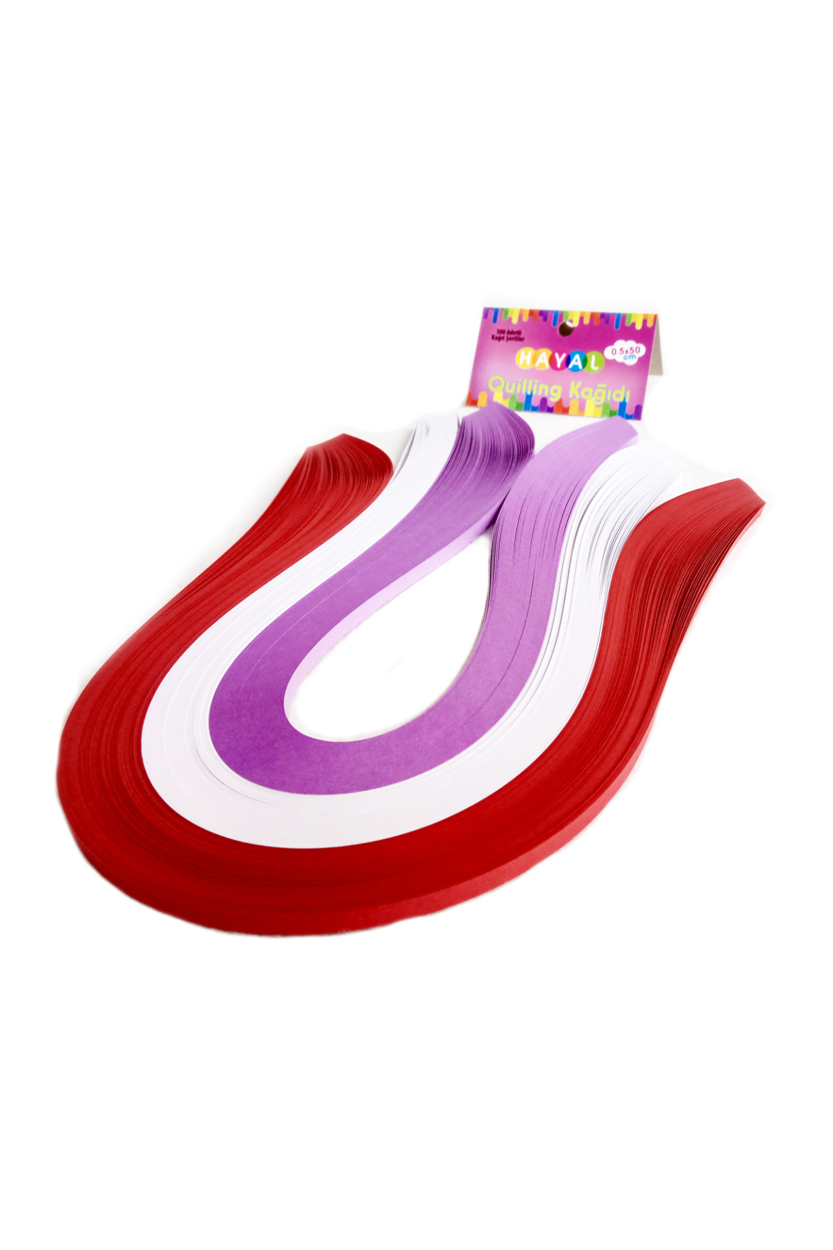 Etiketler: Quilling Kağıdı - Koyu Kırmızı, Beyaz ve Lila 300'lü, QKS-3007-5m, 5 mm Karışık Renkli 300 Adetli Quilling Kağıtları, Quilling Seti